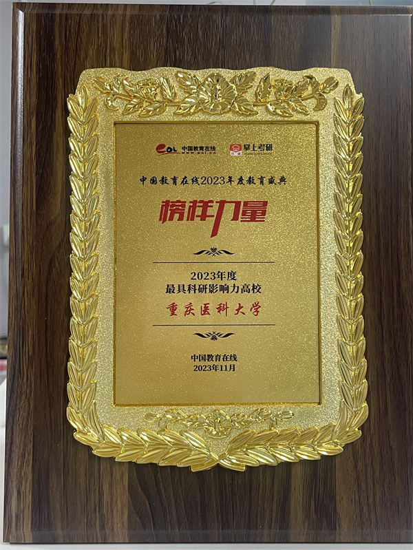 近日,必威体育登录网址 “榜样力量·2023年度研究生教育评选盛典”评选获奖名单揭晓,重庆医科大学荣获“2023年度最具科研影响力高校”奖项。