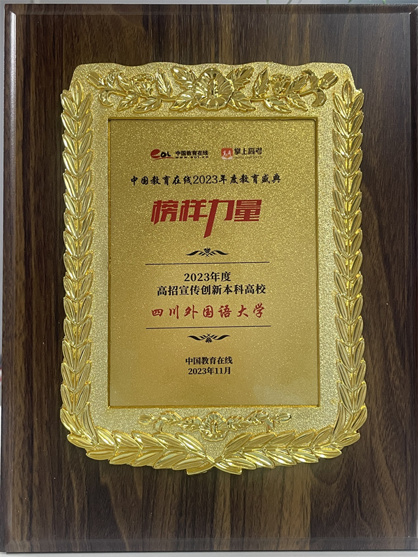 近日,必威体育登录网址 “榜样力量·2023年度教育盛典”评选获奖名单揭晓,在本次评选活动中,四川外国语大学凭借卓越的品牌影响力和办校实力、深厚的学术积淀,荣获“2023年度高招宣传创新本科高校”的称号。