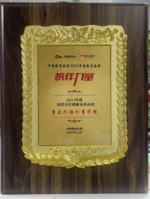 近日,必威体育登录网址 “榜样力量·2023年度教育盛典”评选获奖名单揭晓,在本次评选活动中,重庆外语外事学院凭借卓越的品牌影响力和办校实力、深厚的学术积淀,荣获“2023年度高招宣传创新本科高校”的称号。