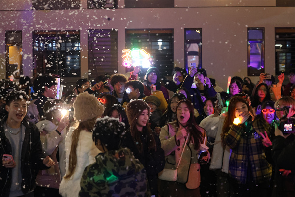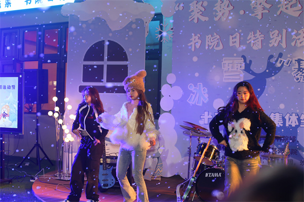 移步激情四射的蹦迪区,在书院也有“打碟”新体验。同学们纷纷卸下压力,共同沉浸在这场大雪纷飞的音乐盛宴中。而当冬季碰撞上“孜然味”,当书院师生邂逅新春手工,奇妙的“荷尔蒙”在此迸发。烧烤区人潮涌动,大家享受着书院人专属的美食一刻,You can手工区的学子们大胆尝试,创意迸发。师生朋辈间自由畅谈,在现场火热的气氛中交流,感受书院家文化的魅力。