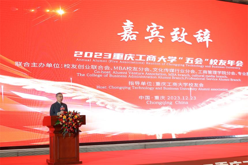 12月23日,重庆工商大学校友创业联合会、MBA校友分会、文化传媒行业分会、工商管理学院分会、专业服务业行业分会(简称“五会”)2023校友年会在南坪国际会展中心隆重举行。南岸区副区长蒋文新,重庆工商大学党委书记曾维伦、副校长陈运超,重庆工商大学原校长王崇举,以及来自全国近400名校友应邀参会。