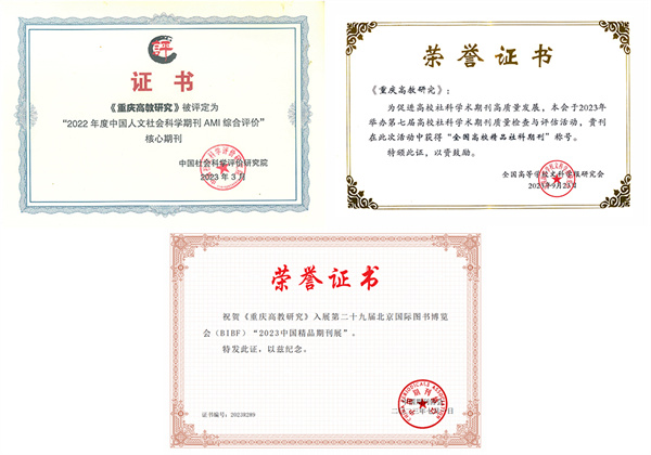 2023年,《重庆高教研究》还首次入选“中国人文社会科学期刊AMI综合评价”核心期刊目录,继续入选CSSCI扩展版来源期刊目录(2023—2024),获得重庆市出版专项资金资助,入选“2023中国精品期刊展”,被评为“全国高校社科精品期刊”。