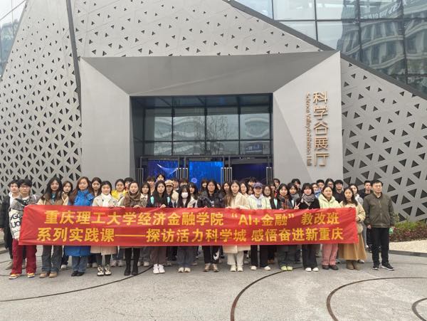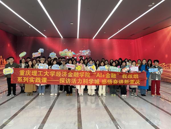 近日,重庆理工大学经济金融学院“AI+金融”教改班前往西部科学城开展“探访活力科学城,感悟奋进新重庆”实践活动。学院辅导员张映雪带队,2023级“AI+金融”教改班全体同学参加活动。