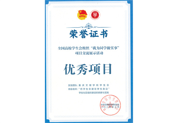 重庆文理学院学生会组织“我为同学做实事”项目入选全国优秀项目