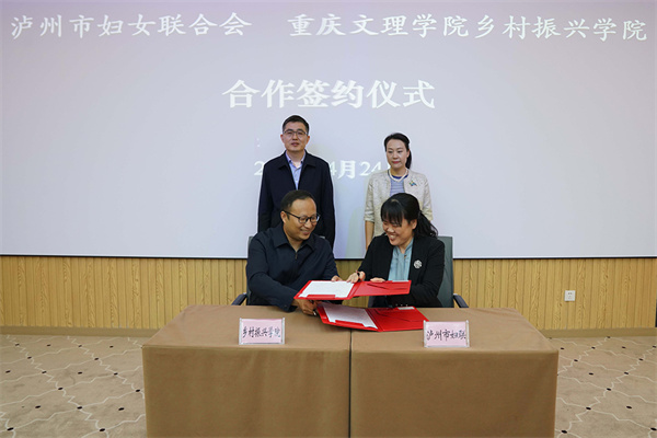 王方和乡村振兴学院负责人作为双方代表,签署了合作协议。陈中祝和唐小玉共同为泸州市乡村振兴女子学堂教学基地揭牌。