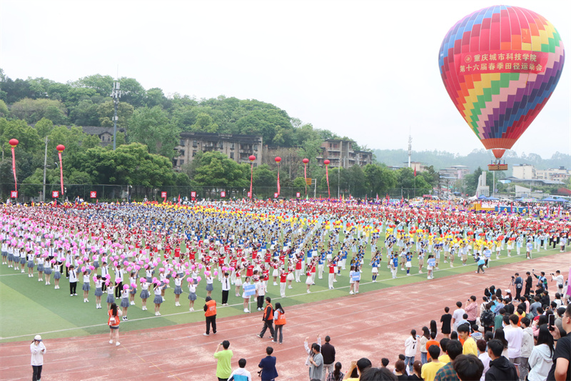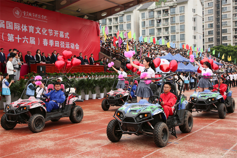 重庆城市科技学院本届春季田径运动会以“青春爱运动 健康强中国”为主题,历时两天,共有902名运动员参赛,另有有177名裁判员、399名团体操队员、355名花束队、彩旗队、礼仪团和国旗护卫队队员以及多名志愿者参与服务,是学校历史上参赛人数最多,参赛规模最大的一届运动会。