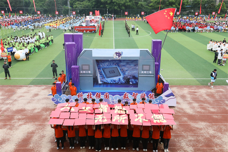 压轴表演——《一起向未来》由1400名学生共同演绎一场青春激扬、活力四射的千人体操。学生们整齐划一的动作,犹如一幅美丽的画卷。现场观众直呼:“太壮观了!”