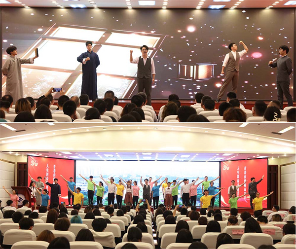 诗歌朗诵《青春的对白》,致敬五四、致敬青春。随后,“十佳青年”获得者分别发表青春宣言,蔡家林为他们颁奖。