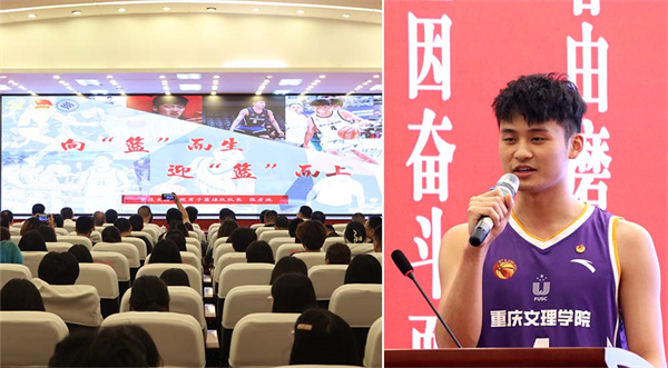重庆文理学院男子篮球队队长张彦池作为青年榜样,为大家带来宣讲《向“篮”而生 迎“篮”而上》,他生动讲述了文理男篮刻苦训练、顽强拼搏的运动经历,展现了新时代青年的蓬勃朝气和昂扬斗志。