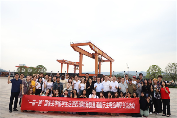 为深入贯彻落实习近平总书记关于西部陆海新通道建设的重要讲话和对重庆作出的系列重要指示批示精神,强化在渝留学生与本地区青年的交流对话。5月14日,重庆文理学院与共青团江津区委共同开展了“一带一路”国家留学生走进西部陆海新通道重庆主枢纽调研交流活动。重庆文理学院党委副书记祝朝伟,校团委、外国语学院相关负责人,教师代表,留学生代表参加调研;共青团江津区委书记周杨,重庆江津综合保税区发展集团有限公司董事长黄树良,区青联联合会相关负责人陪同调研。