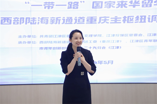 江津区青联联合会副主席、区青商会会长喻春喜发言,江津综合保税区发展集团有限公司董事长黄树良介绍了江津区西部陆海新通道重庆主枢纽相关情况。