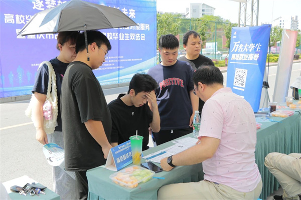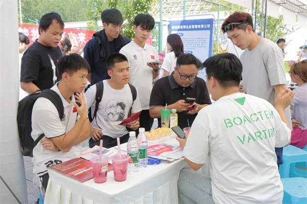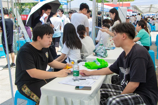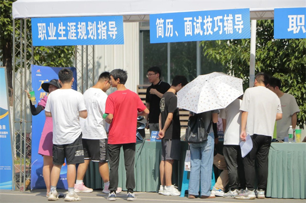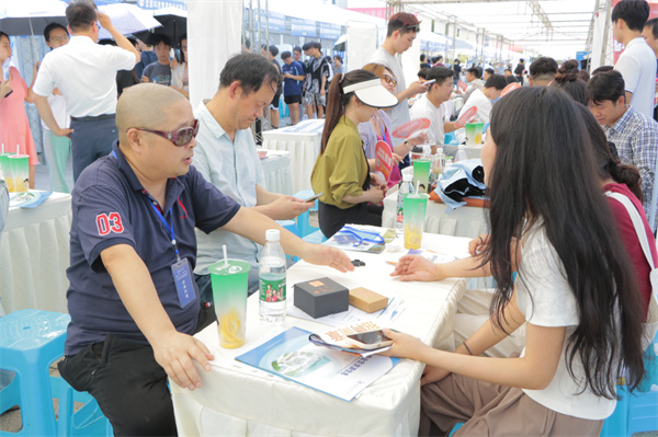 招聘会现场氛围热烈,炎热的天气也阻挡不了毕业生和企业代表们的热情。毕业生们手持精心准备的简历,穿梭于各个招聘单位之中,结合自身专业优势和求职方向,主动与用人单位沟通交流,寻找心仪的企业与岗位。各二级学院组织2025届毕业生来到现场寻找实习单位,打好就业“准备战”,他们积极与企业代表细致交流,了解行业需求和职位要求。用人单位代表们热情耐心为同学们答疑解惑,介绍企业基本情况、招聘岗位要求、薪资待遇及未来发展等相关信息,并进行现场面试,近1000名毕业生初步达成实习及就业意向。