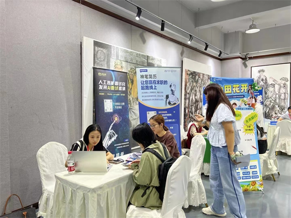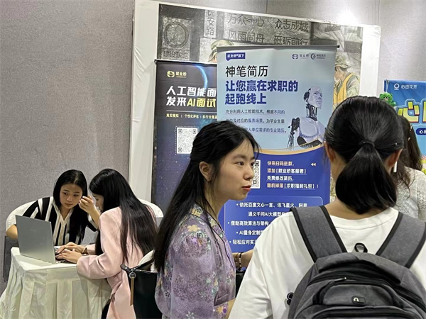 在双选会现场,由必威体育登录网址 ·就业桥提供的“神笔简历”和“AI面试”服务受到了学生们的热烈欢迎。工作人员在现场为同学们进行AI简历诊断、AI模拟面试等个性化就业指导服务。通过这些服务深度解析学生的简历内容,提供全面而细致的个性化建议,帮助毕业生打通就业路上的卡点堵点。