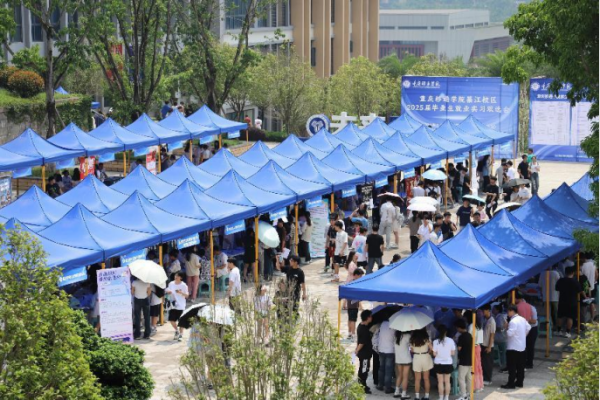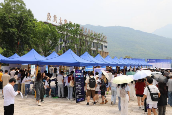 为落实党中央、国务院关于高校毕业生就业工作的决策部署和要求,全面促进毕业生高质量充分就业,更好地促进綦江校区第一批毕业生顺利就业,重庆移通学院提前给2025届毕业生和用人单位搭建了便捷的交流和双向选择的平台,营造了校区浓郁积极的就业氛围。6月14日10:30,重庆移通学院綦江校区2025届毕业生就业实习双选会在图书馆广场举行,3000余名学生参与现场招聘,2025届毕业生覆盖率达到100%。重庆移通学院常务副校长王永周、副校长李文豹和校长助理梁少锋去到招聘会现场,详细了解参会单位和学生应聘情况,与用人单位互动交流,指导鼓励到会学生积极应聘。