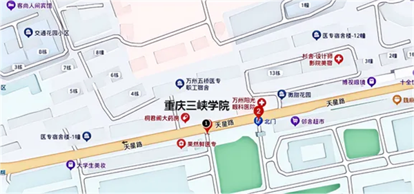 导航至重庆三峡学院。请遵守学校管理规定,自驾车进校家长可在划线区域和校园停车场停车。