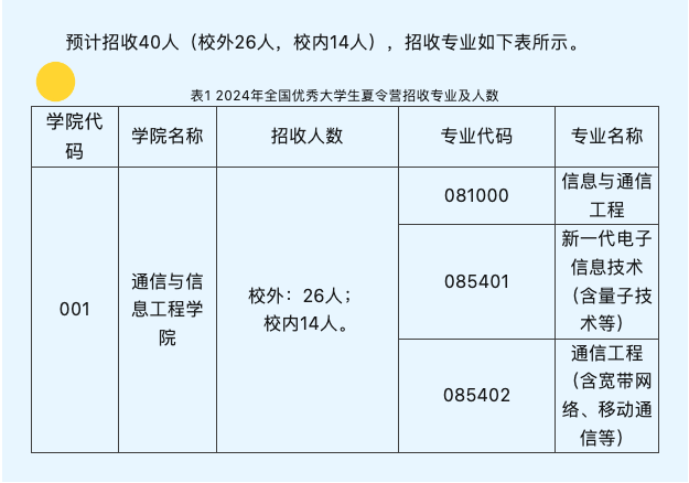 2024年全国优秀大学生夏令营活动面向对象为全国各高校全日制2025届应届本科生,就读专业与通信与信息工程学院招收专业相同或相近,综合素质高,学习成绩优秀。