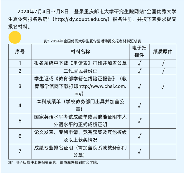 为加强各高校优秀大学生对重庆邮电大学研究生教育特色、学科优势、培养条件、师资力量等方面的了解,促进师生之间的交流,选拔有科研潜质的优秀人才,重庆邮电大学将开展2024年全国优秀大学生夏令营活动。