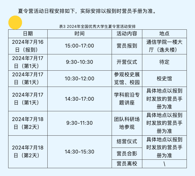(二)夏令营期间可能涉及到安全问题,请务必注意个人安全。因故不能按时参加或提前离开者,请提前告知学院并经过批准。
