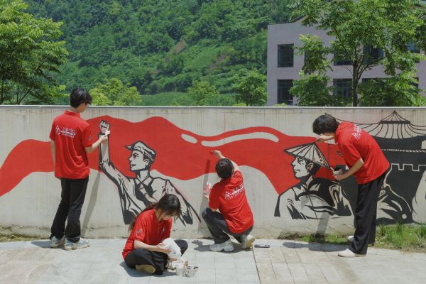 “我们团队十多个人,花了将近4天的时间,总共完成了6面墙,粗略估计有130多平米”,学生志愿者吕泽伊告诉记者。设计稿也是在不断打磨和完善,我们希望墙绘不仅仅是美化校园环境,更多的是激活乡村文化资源,打造特色鲜明的地域文化艺术空间。