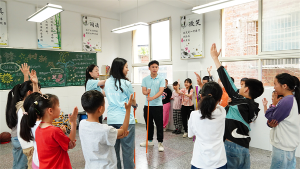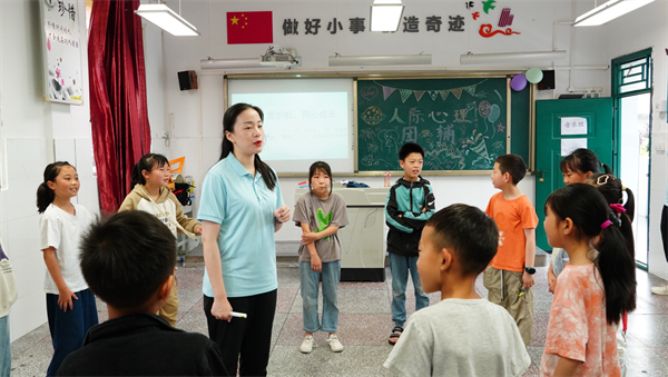 “别担心,我们是一个团队,大家齐心协力总能想到解决问题的办法。”“我数123,大家尝试一起迈步,争取在最短时间内完成不倒森林的传递。”这些真挚、温情的话语,出自重庆第二师范学院教师教育学院的志愿者们带领万州区恒合民族中心小学的同学们开展的人际主题团体心理辅导活动。