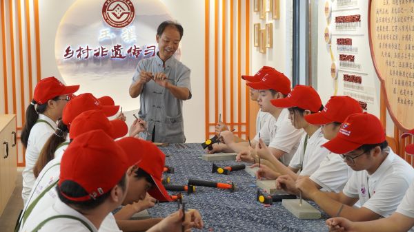 玉溪石刻艺术的第五代传承人莫志鸿为实践团成员讲解了玉溪的八大非遗文化:打棋子文化、玉溪弹棉文化、玉溪酒曲文化、号子文化、酿酒文化、玉溪莫氏竹编、玉溪薄饼、玉溪石刻。接着,成员们开始亲自体验玉溪石刻,期间莫老师指导大家如何使用錾子、锤子、石头等工具进行刻画姓名、山水画,制作过程每一步都需要耐心和细心,这也让大家更加体会到石刻艺术的独特魅力以及工匠精神。