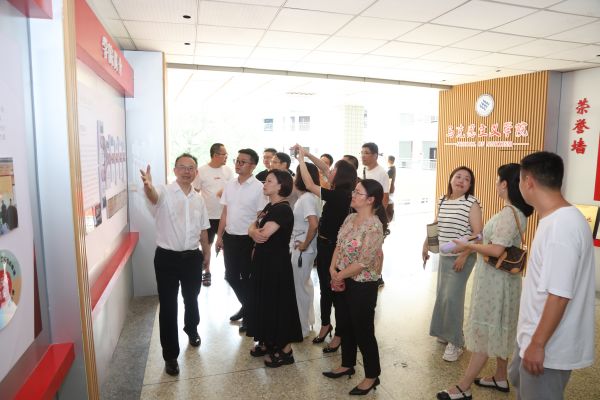 来到马克思主义学院,校友们重点参观了马院的文化墙建设。杨正强向校友们详细介绍了马院的发展历程、“一训三风”(院训、院风、教风、学风),以及在人才培养、科学研究、社会服务等方面取得的显著成绩,重点介绍了党的建设、思政课建设等方面的特色亮点和发展愿景。