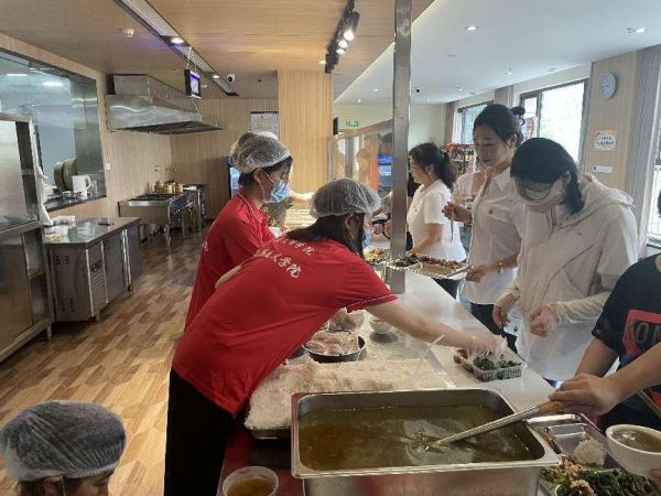 在天元社区食堂,志愿者在工作人员指引下,有序开展社区帮厨志愿服务。在打菜窗口,志愿者协助工作人员盛汤、递碗、传餐盘,主动为老年人端餐盘、寻座位,耐心地为老年人打包餐食。在餐具回收处,志愿者迅速而有序地清理着餐盒餐筷,细心地将餐盒分类,将筷子和勺子整齐地归类在指定位置。志愿者还时刻关注着餐桌的整洁情况,拧着抹布与小桶,穿梭在餐桌之间,及时清理掉落的饭菜残渣,保持餐桌干净整洁。据社区食堂负责人介绍,南川区不断推进“家门口”助餐服务体系建设,进一步织密惠民服务网络。天元社区食堂结合“一刻钟便民生活圈”建设,以“小食堂”服务“大民生”的创新方式,切实解决了周边群众尤其是老年群体的用餐难题,助力南川区养老服务高质量发展。