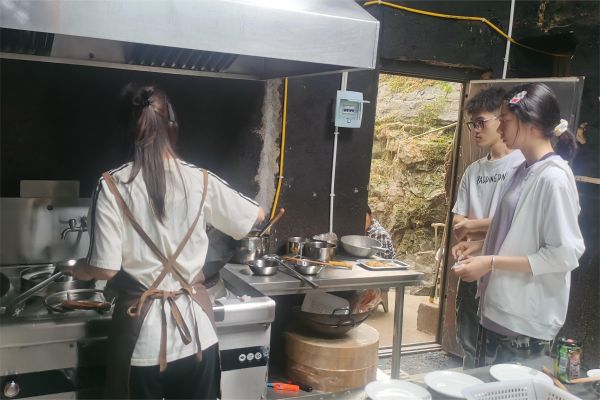 午餐时刻,实践团来到厨房,开展了一场别开生面的“烹饪艺术”。在农户的指导下,实践团的黄燚、杨琬云等几位同学分工合作,洗菜、切菜、准备配料,各司其职,有条不紊地忙碌着。一个多小时后,一顿简单又色香味俱全的午餐便呈现上餐桌,有鱼香肉丝、番茄炒蛋、家常豆腐......团队成员们围坐在一起用餐,纷纷赞叹自己动手做的饭菜更加美味可口,一起聊着在双河镇调研过程中的所思所想,不仅增进了彼此的友谊,而且对乡村生活的朴素与美好有了更加深刻的理解与热爱。