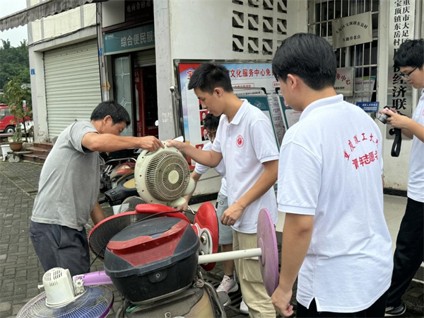 为全面贯彻落实习近平总书记关于新时代劳动和劳动教育的重要论述,激励广大青年学生践行社会主义核心价值观,走近社会、躬身实践。7月9日-12日,重庆理工大学电气与电子工程学院暑期“三下乡”社会实践团前往重庆市大足区宝顶镇开展义务维修志愿服务。