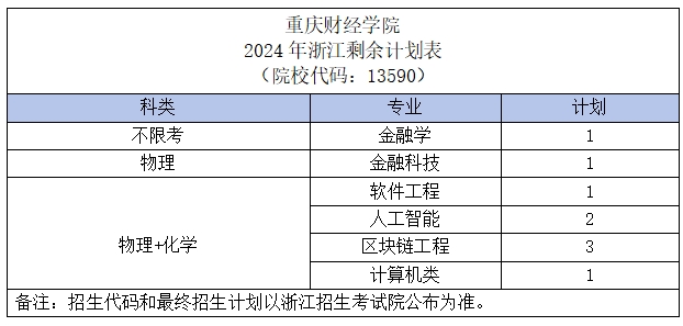 重庆财经学院在浙江省设有多个专业的剩余招生计划,具体如下: