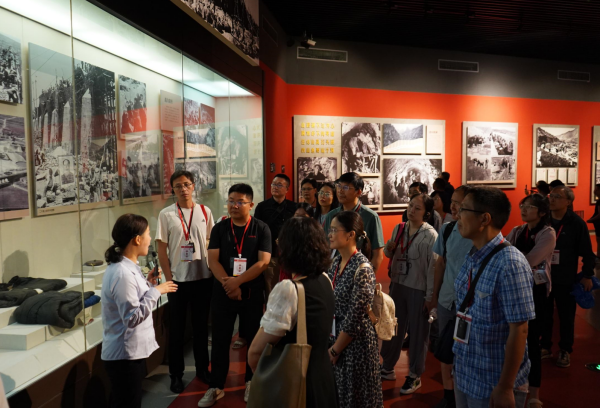 随后,研修学员前往林州红旗渠红色教育基地,实地感受并体悟林县人“自力更生、艰苦创业、团结协作、无私奉献”的不朽红旗渠精神。红旗渠是林县人仅靠钢钎、铁锤、凿子、手推车、扁担和箩筐等原始工具修建的“世界第八大奇迹”。在红旗渠纪念馆,那一幅幅珍贵的历史照片和一个个生动的实景沙盘,再现了林县人民当年引漳入林、人定胜天的壮丽画卷,让学员们感慨万千的同时加深了对红旗渠精神的理解和感悟;在青年洞的陡峭岩壁间,在分水闸的智慧巧思里,学员们用心感受着红旗渠精神的时代内涵。为了提升研修实效,老师们结合一流课程的建设,开展了主题为“红旗渠精神永放光芒”的行走课堂。