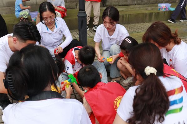 活动中,重庆对外经贸学院实践团的成员作为引导师,带领青少年们参观聂荣臻元帅陈列馆的各个展区,生动讲述了聂荣臻元帅的卓越贡献。参观结束后,引导师们配合阳光公益志愿者协会工作人员巧妙地融入了“乐高呈现感悟”的互动环节,鼓励青少年们用手中五彩斑斓的乐高积木,构建出他们心中的英雄形象和革命故事,以此方式分享个人对红色精神的感悟。