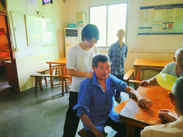 在品尝酸梅汤的间隙,实践服务队成员为老人进行按摩。按摩手法是专为老人准备的,怀着“为老年人按摩不仅能让老人得到身体上的放松,更是心灵上的温暖”的信念,为老人带来了舒缓与放松。