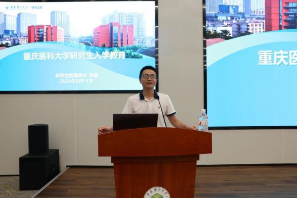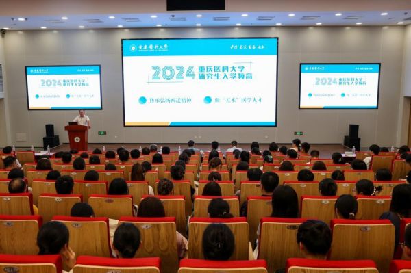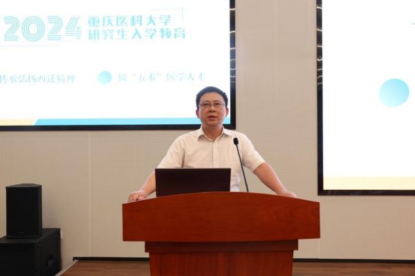 2024年9月11日,重庆医科大学2024级研究生新生入学教育在袁家岗校区崇医楼二楼学术会议厅举行,校党委常委、副校长余华荣,研究生党总支书记钟朝晖,药学院院长党永军,研究生院副院长许瑞,研究生辅导员代表,现场300余名2024级研究生新生代表及线上5000余人参与会议。会议由钟朝晖主持。