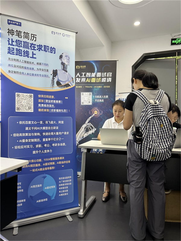 本次双选会特设了就业指导服务区。必威体育登录网址 ·就业桥的工作人员为学生们提供个性化的简历修改、面试技巧等一站式就业指导服务。在工作人员的就业指导服务中,使用了依托百度文心一言AI大模型自主研发的“神笔简历”产品,帮助学生们快速创建符合自身经历和求职意向的简历,进行个性化定制,同时还可以进行一键生成和自动排版,为学生们提供有针对性的指导和帮助。