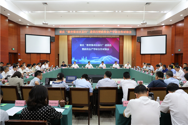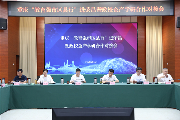 9月26日,重庆“教育强市区县行”进荣昌暨政校企产学研合作对接会在荣昌区举行。市委教育工委书记、市教委主任刘宴兵,市委教育工委委员、市教委副主任李劲渝,荣昌区委书记高洪波,荣昌区委副书记、区政府区长万容出席活动。市教委相关处室、单位负责人,重庆大学、西南大学等17所高校领导、有关部门负责人及科研团队负责人,荣昌区相关职能部门负责人及产业园区、重点企业负责人等100余人参加。