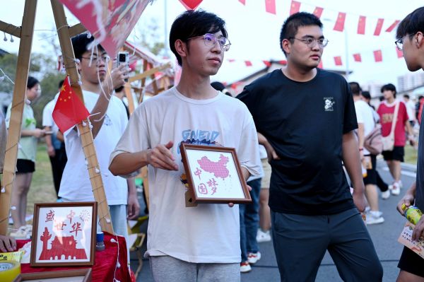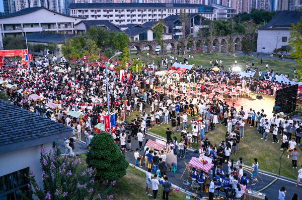 2024年9月28日,重庆移通学院在校内草坪为4000余名9月生日的师生庆祝生日,同时现场以编织国庆元素竹编画、草坪大合唱的形式献礼国庆,共同庆祝中华人民共和国成立75周年!