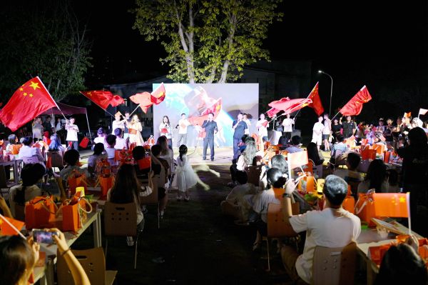 与此同时,来自五湖四海、不同民族的同学们身着各自传统的民族服饰同歌共舞,4000余名师生齐声高唱《我和我的祖国》《歌唱祖国》《今天是你的生日,中国》《谁不说俺家乡好》等歌曲。现场歌声激昂,气氛热烈,一面面鲜红的国旗在师生手中高高飘扬,与现场一张张洋溢着幸福与自豪的笑脸交相辉映,构成了一幅星星相映、民族共融的绚丽画卷。