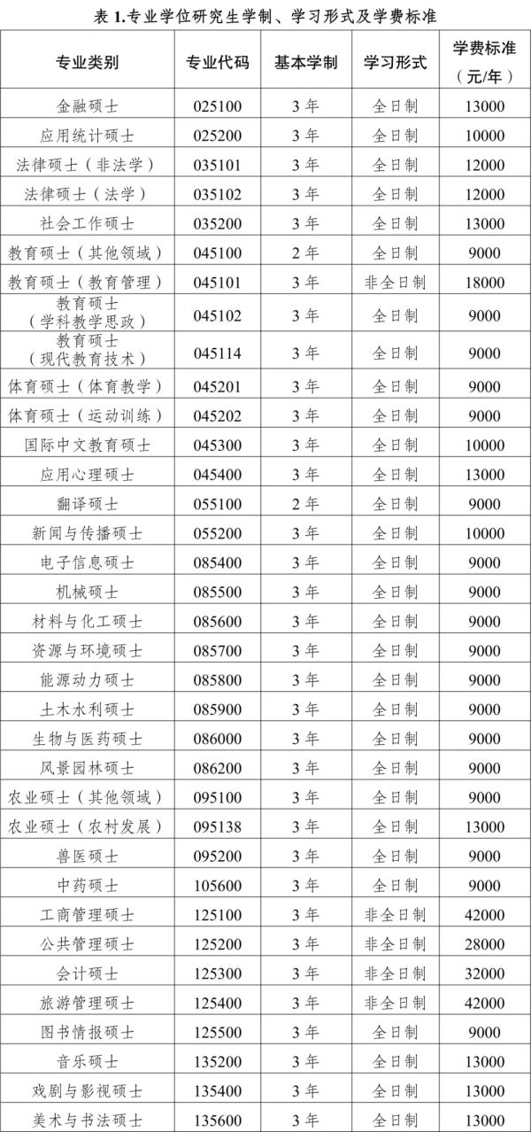 2.管理学(管理科学与工程)硕士、体育硕士(运动训练)暂按表中标准收取,最终缴费标准以主管部门审批为准。