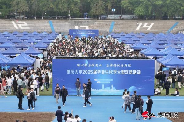 2024年10月18日,重庆大学A校区思群广场人流如织,场面火爆,重庆大学2025届毕业生秋季大型双选会正在这里举行,这是重庆大学今年秋招最大规模的毕业生双选会之一,来自全国各地各行业的500家用人单位带来了超过3万个就业岗位,吸引了校内外1万余名毕业生参加。