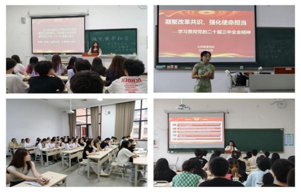 深入全校师生开展宣讲是重庆财经学院的优良传统,也是推动党的二十届三中全会精神落地见效,入脑入心的重要举措和有效途径。党的二十届三中全会召开后,重庆财经学院公共管理学院以“三微”方式,面向全院师生开展对象化、分众化、互动化宣讲,营造师生联学共讲全会精神的良好氛围,切实推动广大师生把思想和行动统一到全会精神上来。