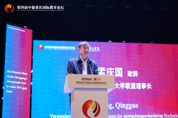 中国应用技术大学联盟理事长孟庆国代表本次论坛指导单位向大会致辞。他提到,论坛将深入探讨AI时代下的中德高等教育合作与实践,为应用技术大学的发展提供新方案。