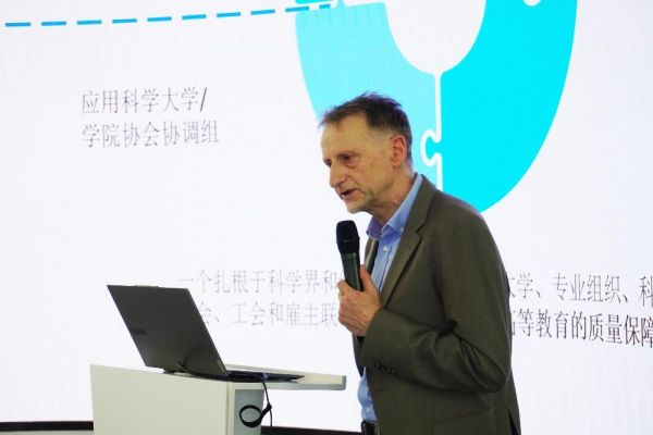 德国ASIIN专业认证中心的认证专家Siegfried Hermes在会上详细介绍了ASIIN认证的特点和具体操作。他讲到,ASIIN是华盛顿协议的准成员,这意味着通过ASIIN认证的学位既符合欧洲的教育标准,也满足美国的要求,成为通向国际工程师职业的“通行证”。获得ASIIN认证的学生,其学位在全球范围内得到认可,这为他们未来在海外继续深造或进入国际就业市场提供了便利。最后,ASIIN认证在48个国家得到广泛应用,形成了一个高效的国际质量保障网络。通过共享数据和标准,ASIIN认证为全球高等教育的质量提升提供了强有力的支持。