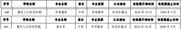 近日,教育部办公厅发布《关于公布2024年通过普通高等学校师范类专业认证及认证中期审核专业名单的通知》,重庆人文科技学院学前教育、音乐学专业顺利通过教育部普通高等学校师范类专业第二级认证,认证结论有效期六年(2024年10月—2030年9月)。