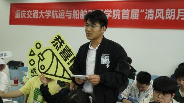 近日,重庆交通大学航运与船舶工程学院首届“清风朗月”杯辩论赛决赛在科学城校区A01335教室精彩上演。此次辩论赛以“清廉航运的建设”为主题,聚焦“自律与他律何者更有利于清廉航运的建设”这一辩题,吸引了众多师生的关注与参与。该活动由重庆交通大学航运与船舶工程学院纪委、分团委联合主办,航运学院学生会承办。