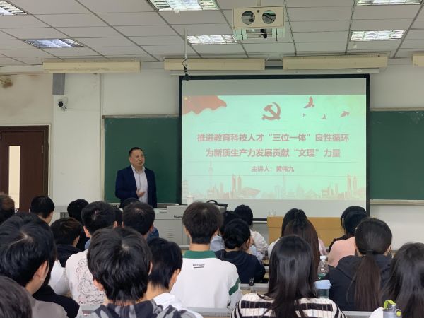 党委副书记、校长黄伟九分别于10月29日和31日,为2024级数据科学、数学(中外合作)和汉语言师范、思想政治教育专业学生讲授题为“推进教育科技人才‘三位一体’良性循环,为新质生产力发展贡献‘文理’力量”的思政课。授课中,黄伟九从“学原文—悟原理—办实事”三个方面展开,带领同学们学习了习近平总书记关于教育、科技、人才工作、新质生产力的系列重要论述,并以我国教育普及水平实现历史性跨越、中兴与华为的挑战、各国顶尖科学家数量对比报告、新质生产力带来的应用场景变革等为例,深入浅出的讲解了教育、科技、人才的重要作用。同时结合实际,讲述了我校如何为新质生产力发展贡献“文理”力量。