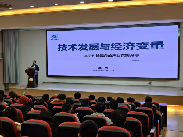 邱勇以在海外留学的丰富经历以及多年在国企和政府经济部门的实践经验,对政府、国企及市场经济的运行机制全面而深刻的理解,紧密围绕技术发展与经济变量的内在联系,结合当前宏观经济环境与国际形势,从科技视角对产业实践中的关键问题进行了深刻剖析。邱勇鼓励在场师生,要紧跟时代步伐,不断提升自身的专业素养和创新能力,积极参与到产学研用的实践中去,为推动技术进步、产业升级和经济社会全面发展贡献自己的力量,同时也为自己创造更加美好的未来和广阔的就业前景。