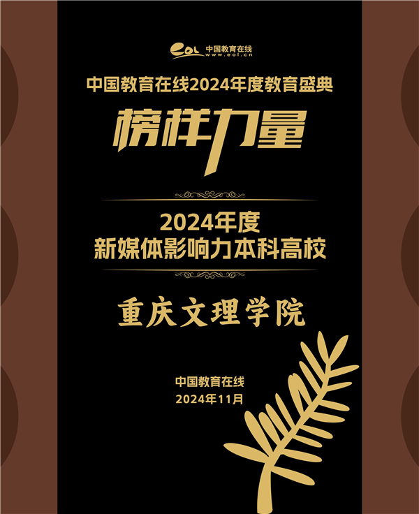 近日,必威体育登录网址 “榜样力量·2024年度教育盛典”优秀案例公布。重庆文理学院凭借在新媒体领域的卓越成就与深远影响力,荣获“2024年度新媒体影响力本科高校”。