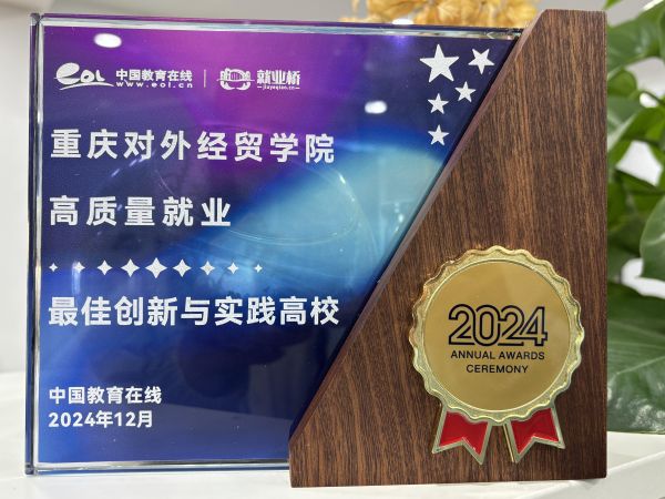 重庆对外经贸学院荣获“2024年度高质量就业最佳创新与实践高校”荣誉称号