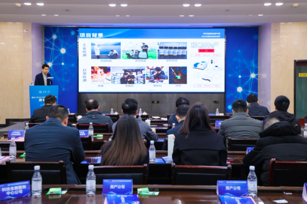 项目路演环节,重庆大学微电子与通信工程学院研究员、博导艾斌介绍了“手机智能检测中枢”项目。他表示,团队研发了一款微型光谱仪,该光谱仪巧妙利用智能手机的摄像头和光源,通过精密的光学元件构建光路,并结合先进的人工智能算法进行模式识别和数据分析。产品体积小、重量轻,无需购买昂贵的专业设备,用户可以随时随地对名酒、奢侈品、化妆品、珠宝、农药等物质进行检测。目前的B端定价是1999元,未来计划在京东、小米等平台上线。